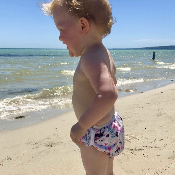 Because “one size fits most” (OSFM) swim nappies do not actually fit all babies, we’ve created adjustable swim nappies in 2 sizes. Now we really can say we’ve got a swim nappy for every baby!