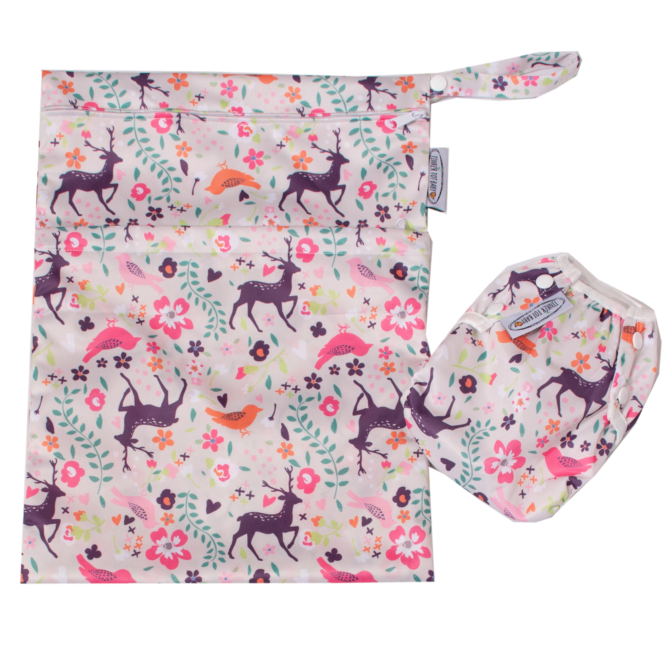 Reusable Swim Nappy & Wet Bag SET – Deer & Forest Friends