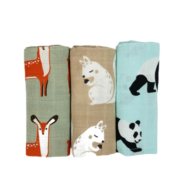 Organic Baby Wash Cloths (3 Pack) – Deer, Panda & Squirrel